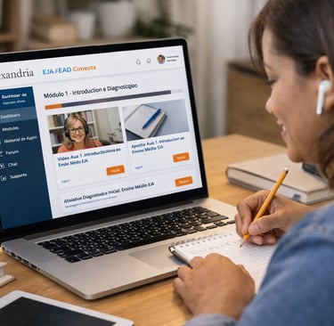 O Instituto Alexandria – EJA EAD Conecta oferece soluções educacionais voltadas à Educação de Jovens e Adultos, com foco em acessibilidade, flexibilidade e resultado. Nossos serviços foram estruturados para atender alunos que desejam retomar os estudos e conquistar certificação reconhecida de forma prática e eficiente.