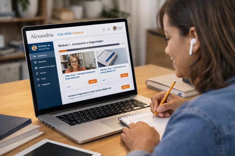 O Instituto Alexandria – EJA EAD Conecta é um centro educacional especializado na Educação de Jovens e Adultos na modalidade a distância. Atuamos na oferta do Ensino Fundamental e Médio com metodologia flexível, acompanhamento pedagógico contínuo e certificação reconhecida.